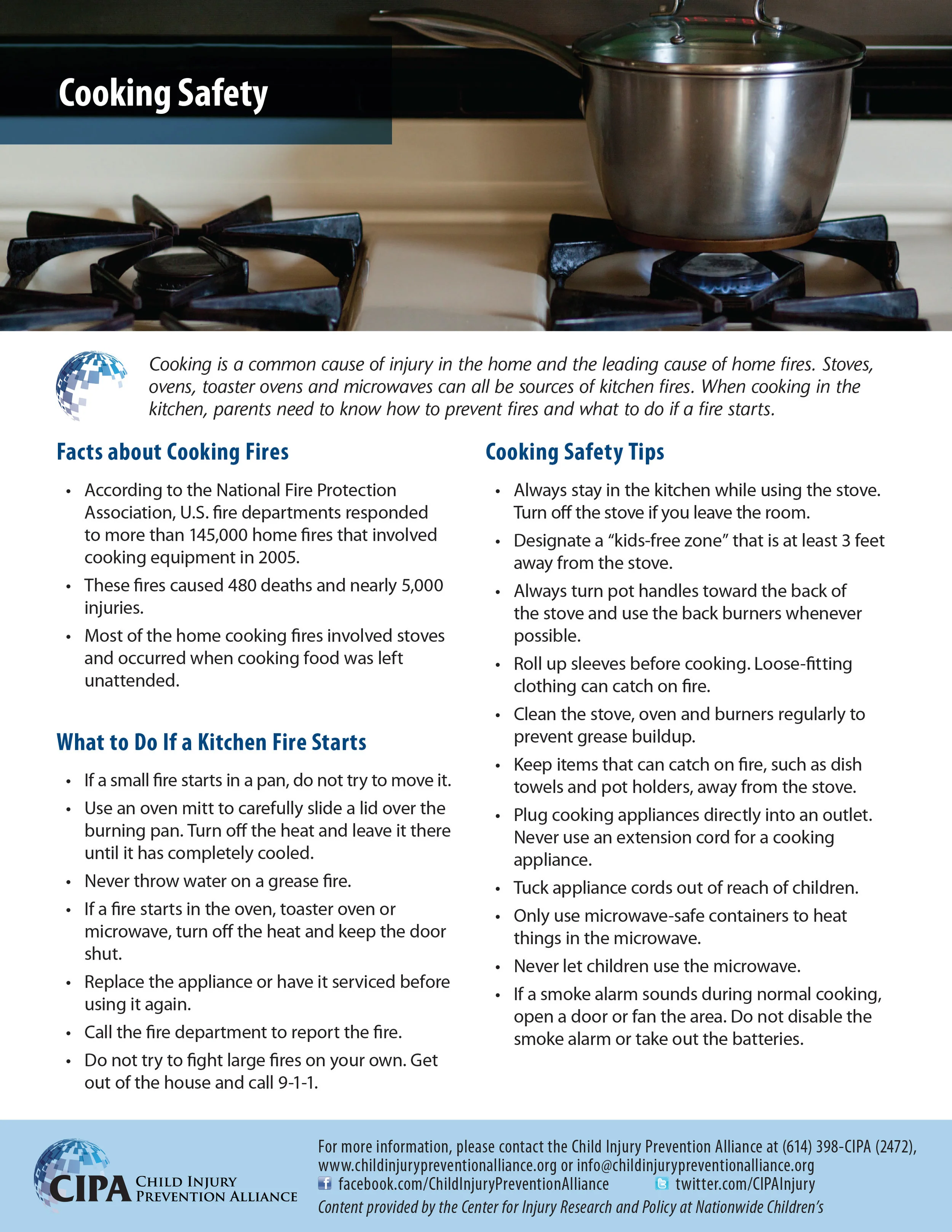 Cooking is a common cause of injury in the home and the leading cause of home fires. Stoves, ovens, toaster ovens and microwaves can all be sources of kitchen fires. When cooking in the kitchen, parents need to know how to prevent fires and what to do if a fire starts.