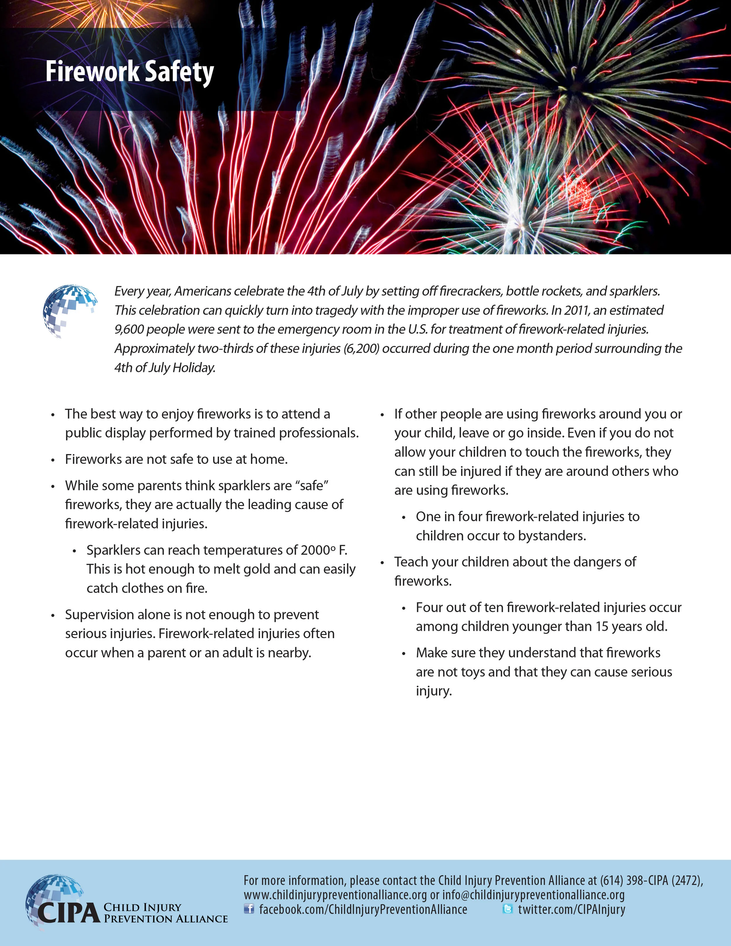 Every year, Americans celebrate the 4th of July by setting off firecrackers, bottle rockets, and sparklers. This celebration can quickly turn into tragedy with the improper use of fireworks.