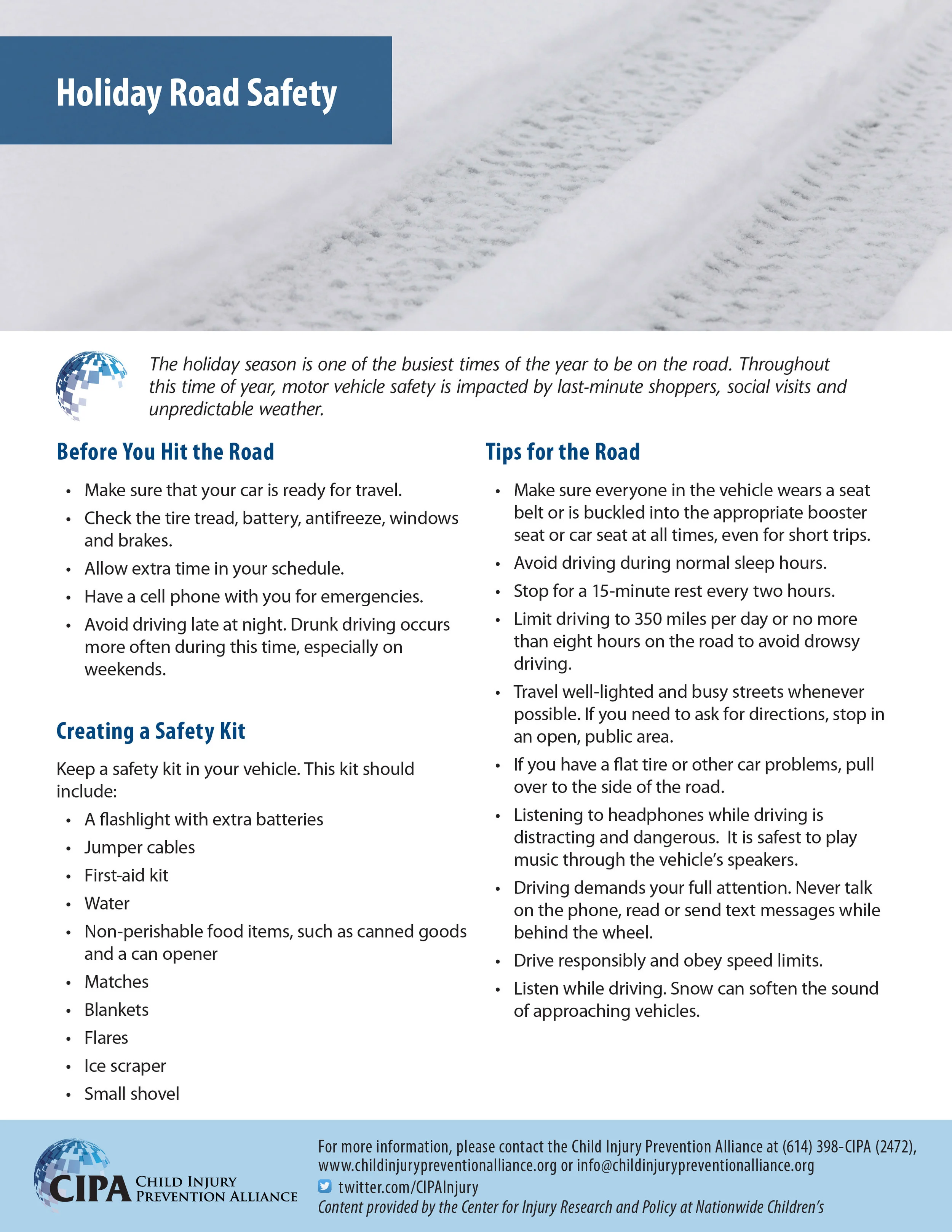 The holiday season is one of the busiest times of the year to be on the road. Throughout this time of year, motor vehicle safety is impacted by last-minute shoppers, social visits and unpredictable weather.